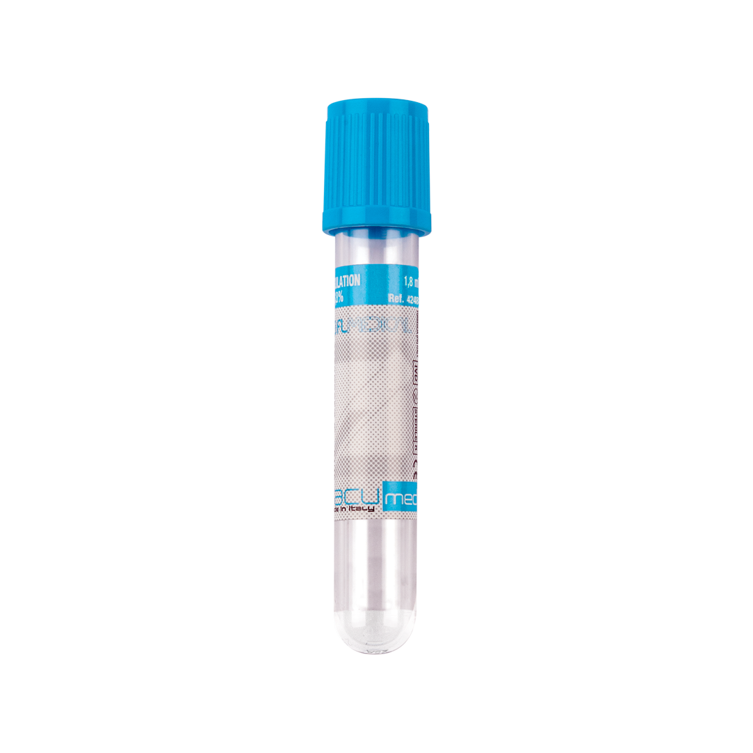 | 42480 | 1,8 ml de sang pour coagulation | 13x75 mm avec 3,8 % de citrate de sodium | bouchon bleu clair, stérile |