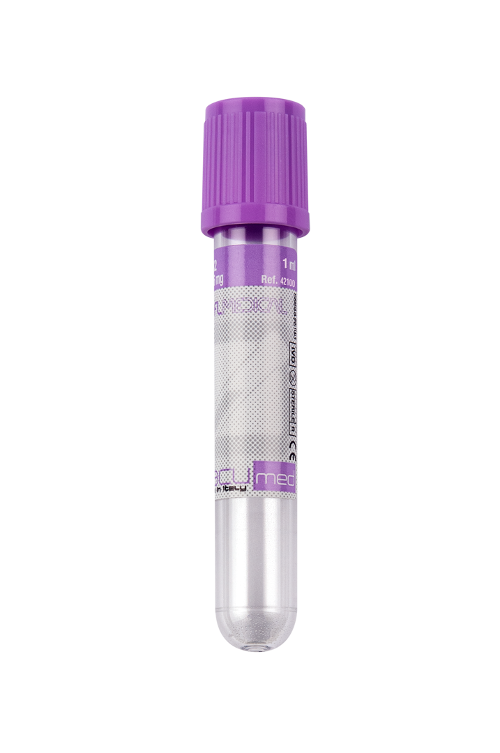 EDTA tubes (with ethylenediaminetetraacetic acid) are designed for whole blood analysis in haematology to determinate erythrocytes, leukocytes and thrombocytes, as well as in molecular diagnostics, for DNA extraction and genetic tests.